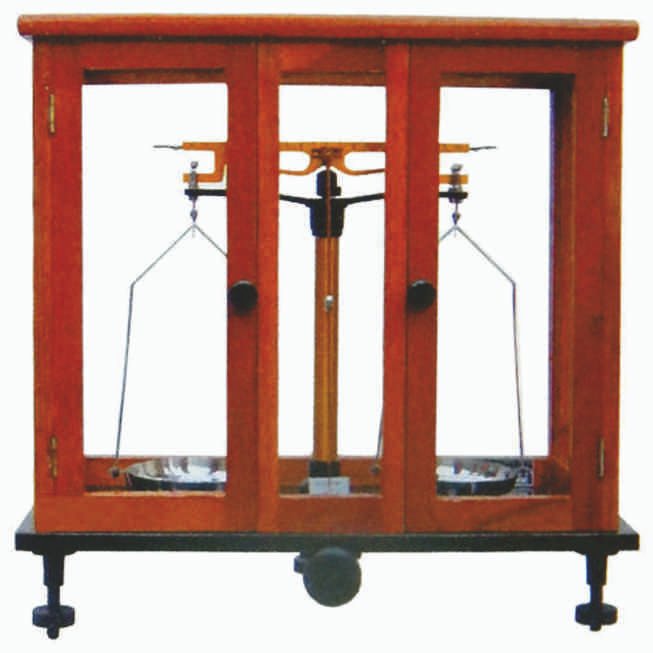 Capacity 200 gm sensitivity 2 mg.The balance is mounted on sturdy wooden base with leveling screws.Teakwood showcase with panel doors.